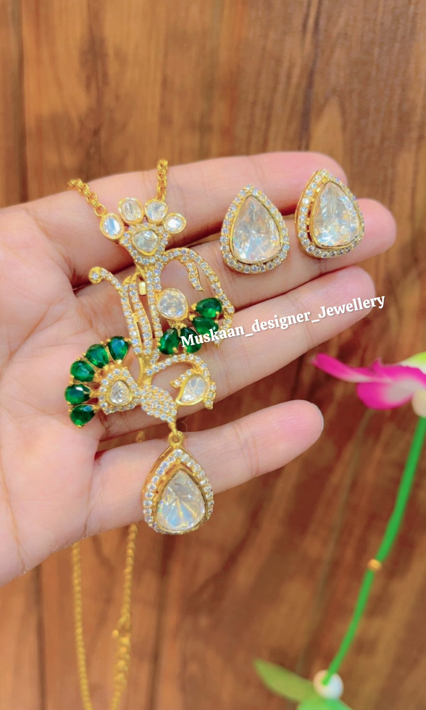 • Pendant Set: Features an original Moissanite Polki pendant and a pair of matching classic stud earrings.