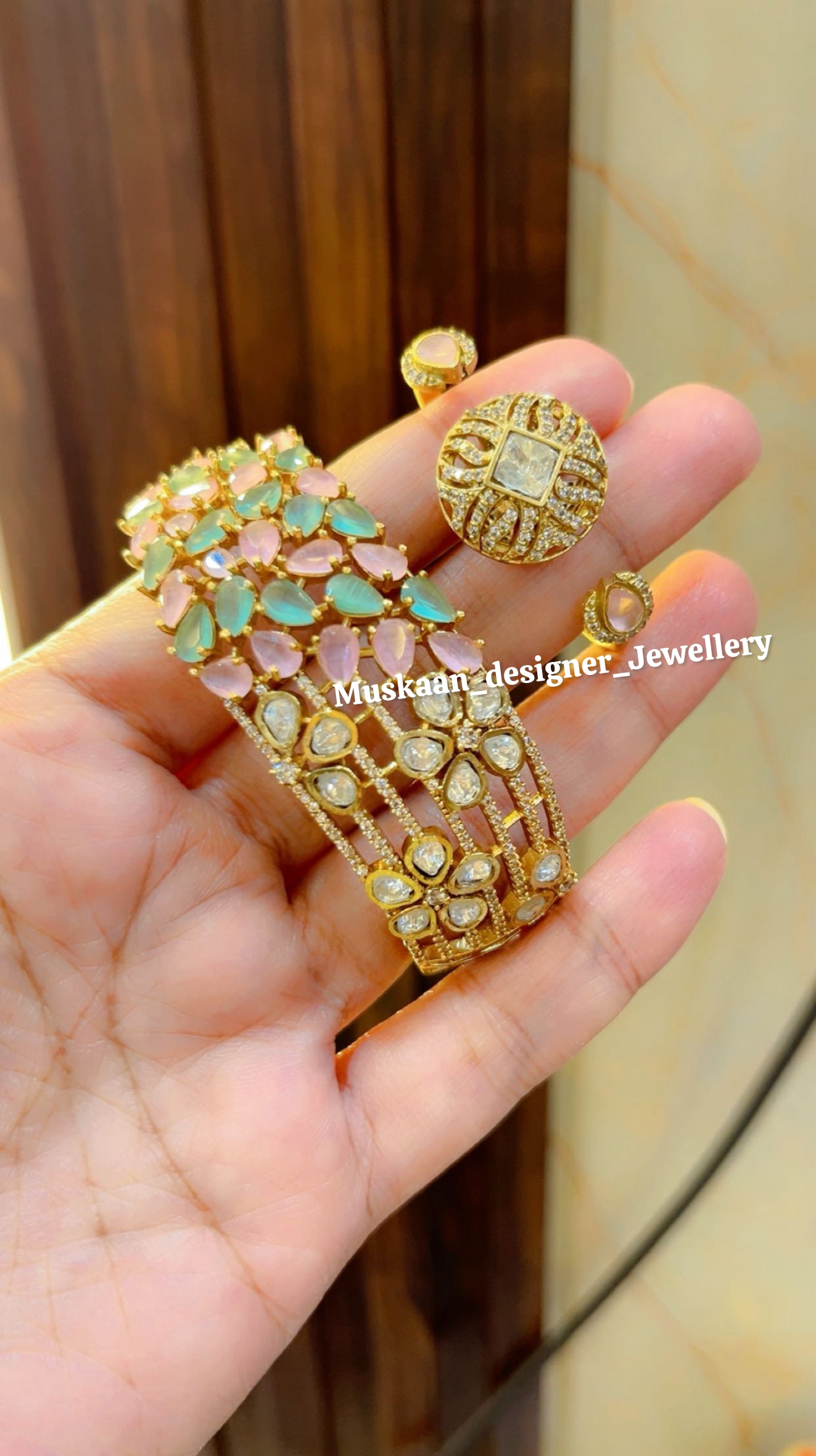 • Design: Delicate mint-toned stones paired with classic Polki patterns.