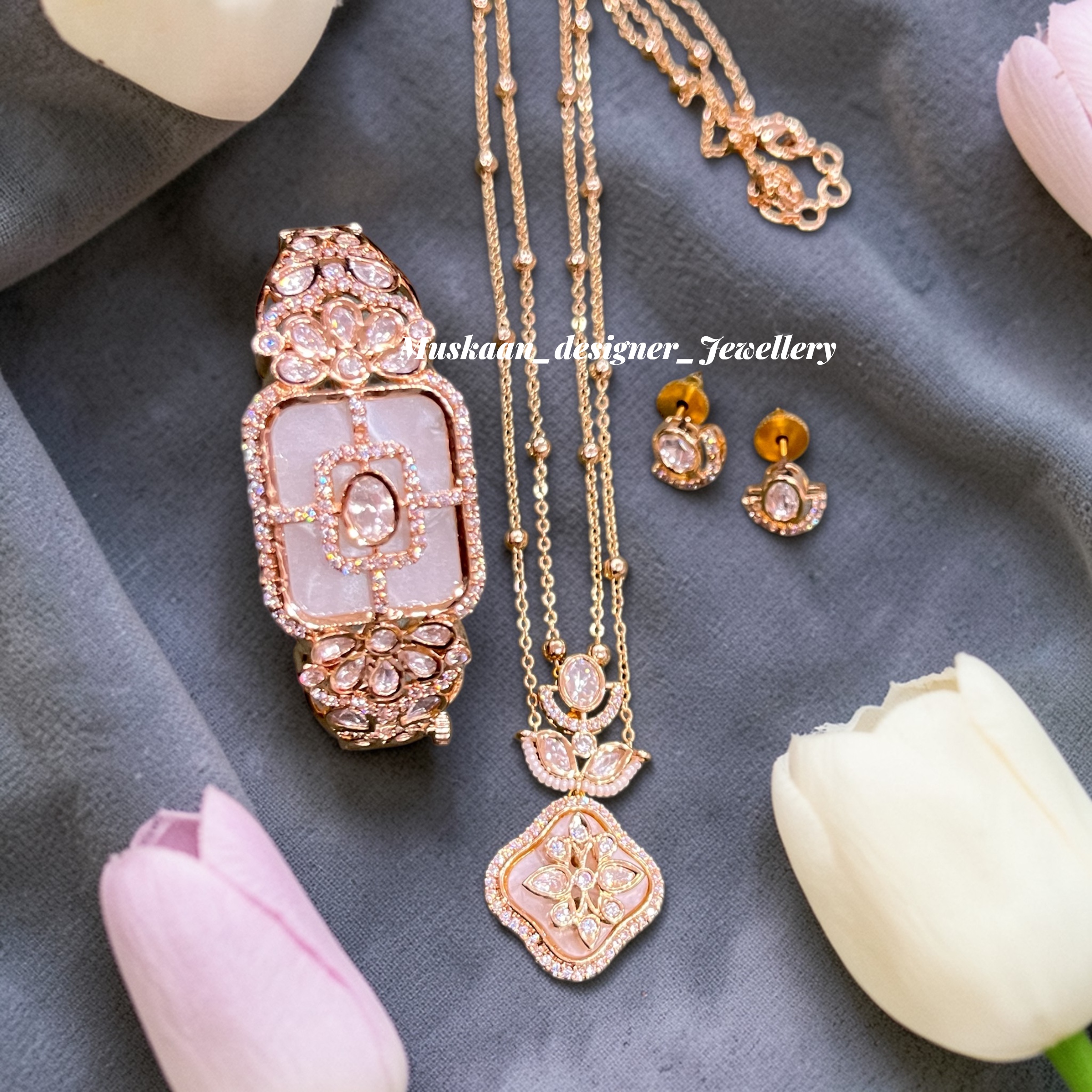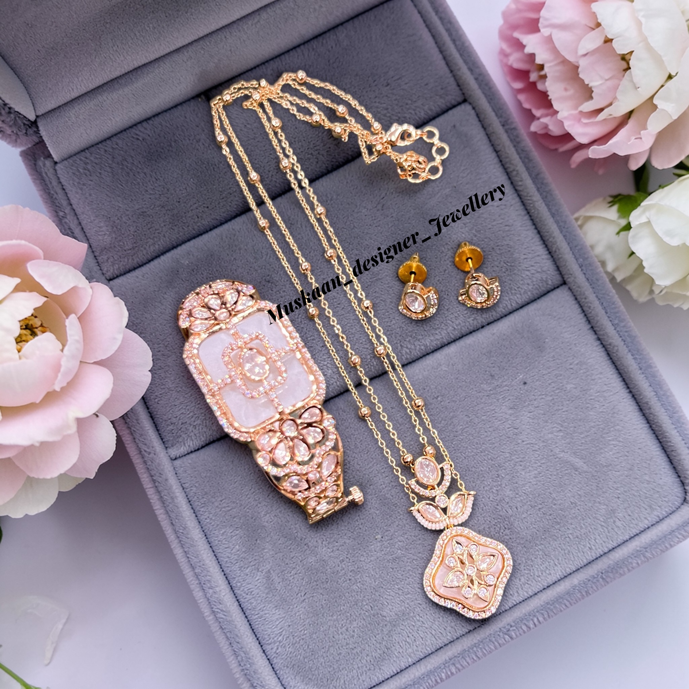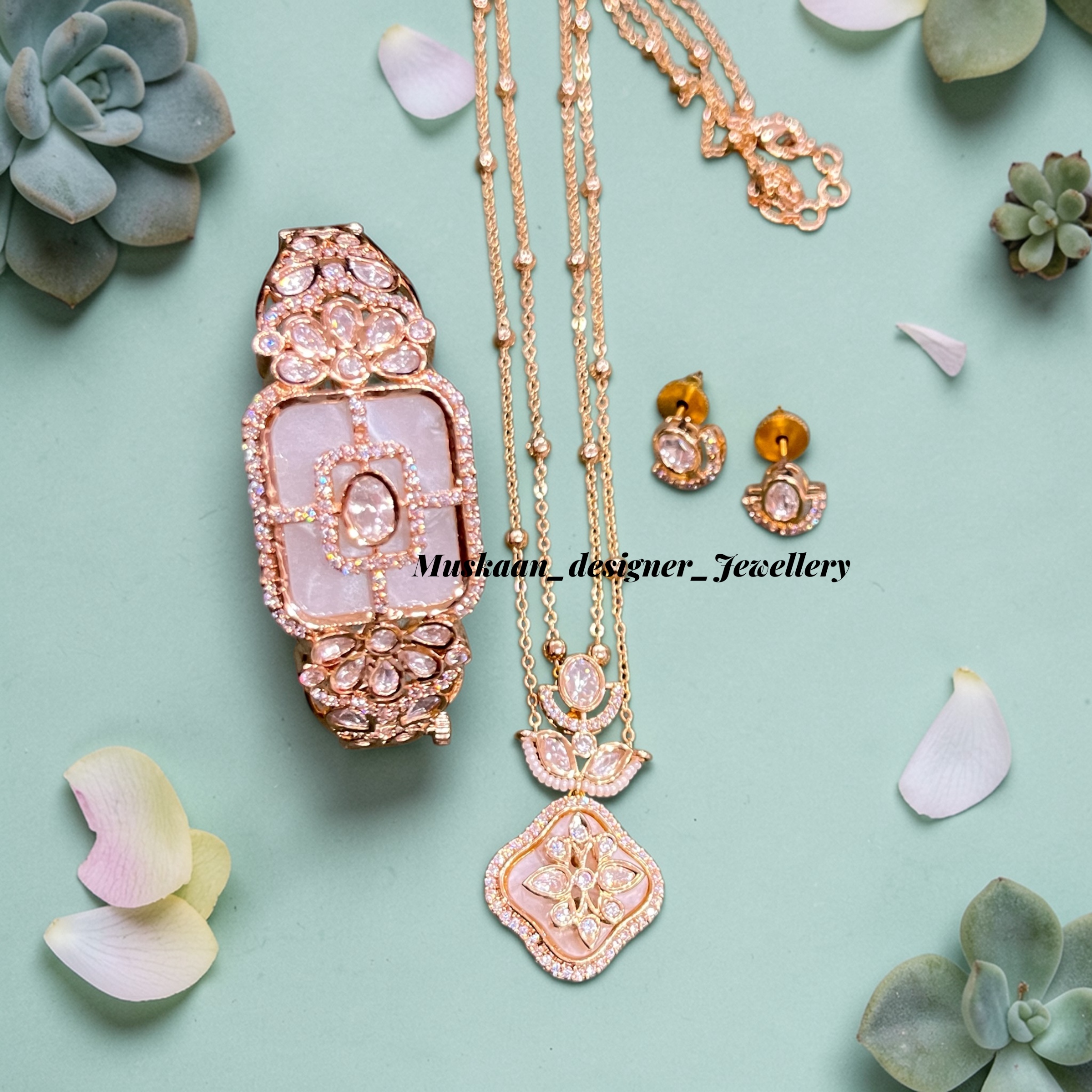 • Pendant Set: Includes a matching designer pendant and a pair of elegant stud earrings.