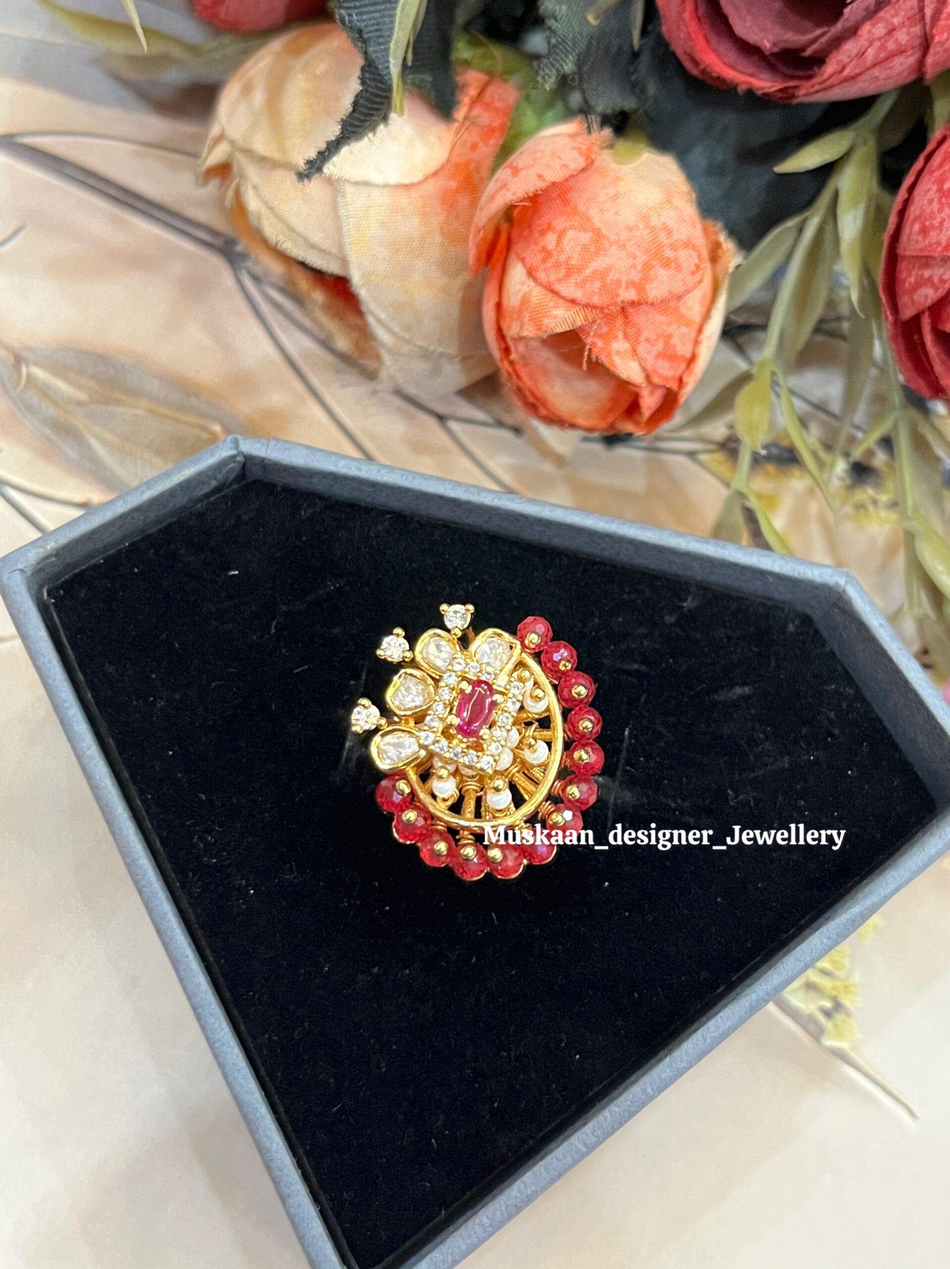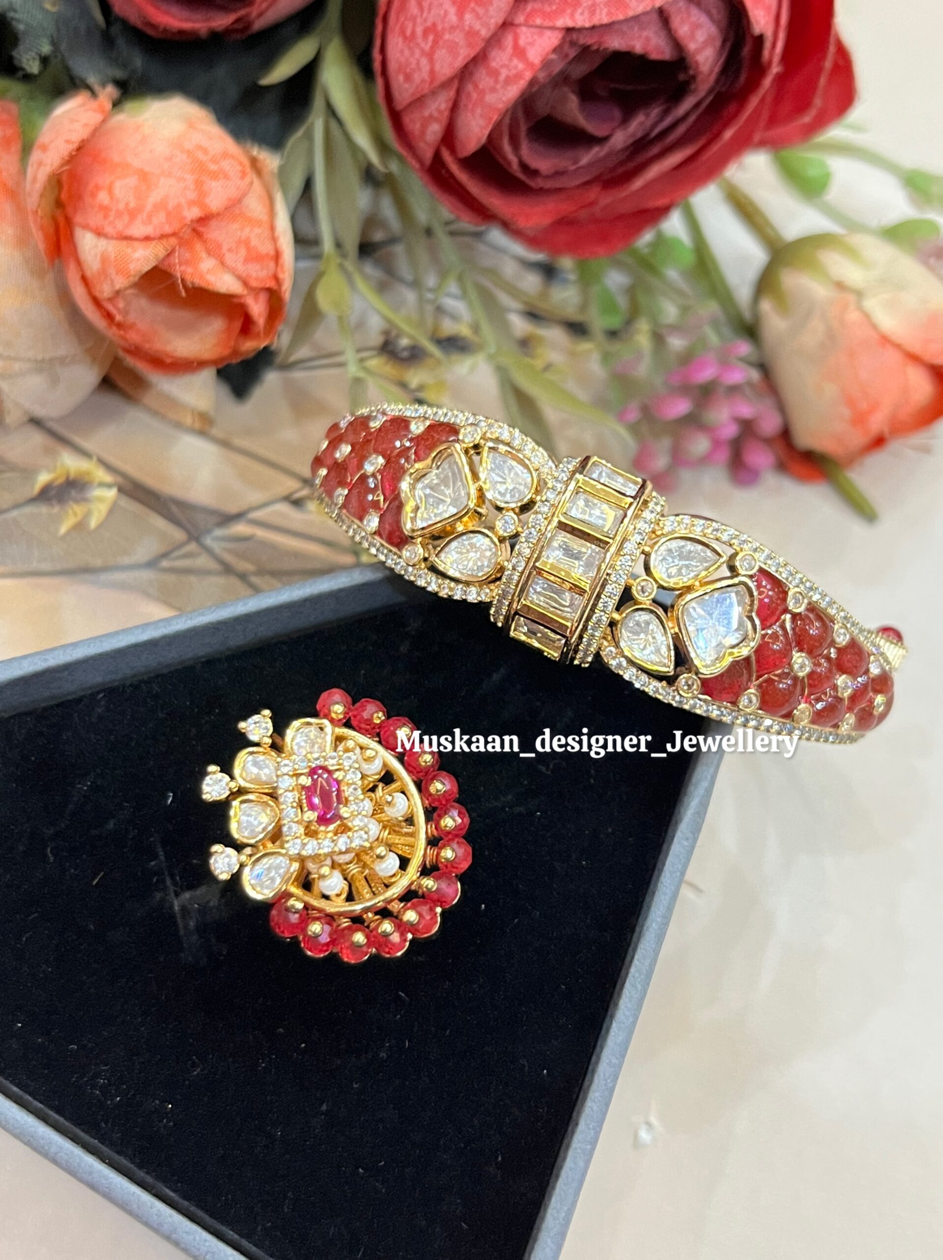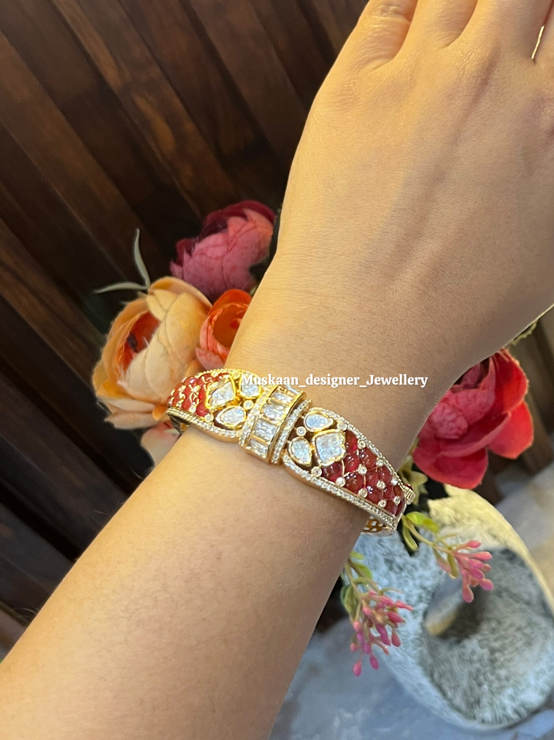 • Design: Royal floral patterns with brilliant Moissanite Polki and green meenakari work.